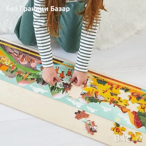 Панорамен пъзел с 100 части: Пренася децата в праисторическата епоха със сцени от палеолита и неолита.