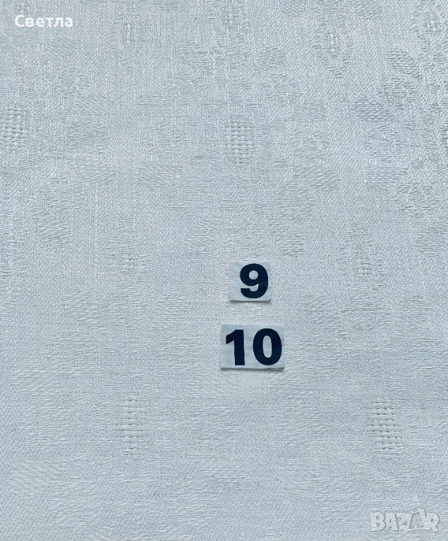 9. Лен бял, с размери по 1,40/1,30м. има петънце при производство–24 лв;
