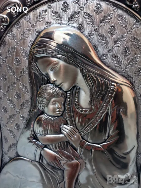 Невероятно Красива Сребърна Икона Богородица Със Младенеца → Обява 48239218