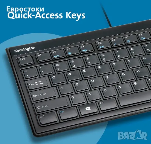 Клавиатурата Kensington Slim K72357ES се отличава с елегантен дизайн и висококачествени клавиши в стил лаптоп, които са прецизни и се чувстват страхотно.