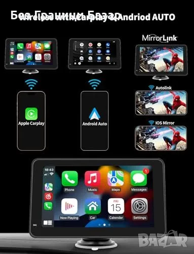 Нов Безжична CarPlay/Android Auto 7" HD екран + камера за паркиране