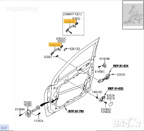 826513S210,826523S010,дръжка хром предни врати HYUNDAI SONATA I45 10/2010 – 2014