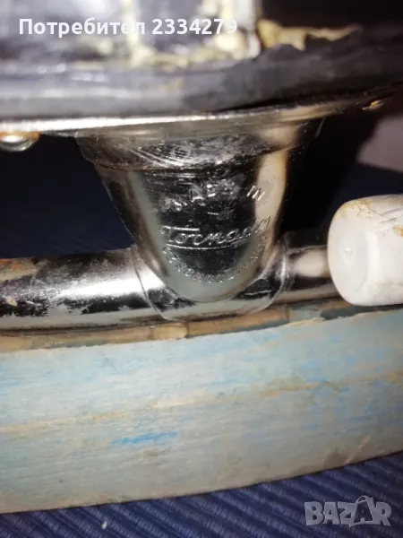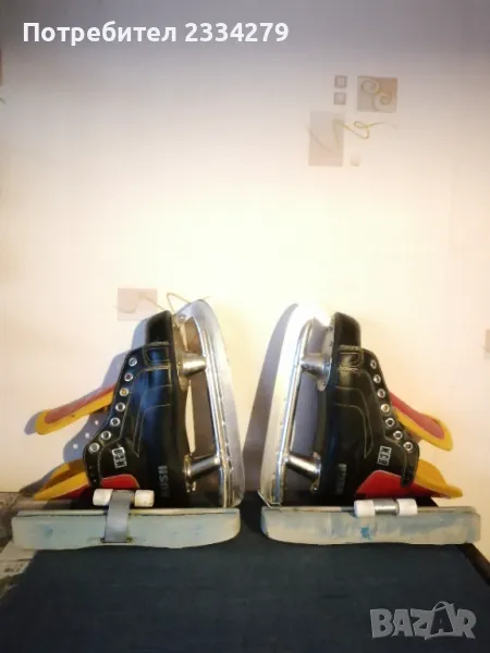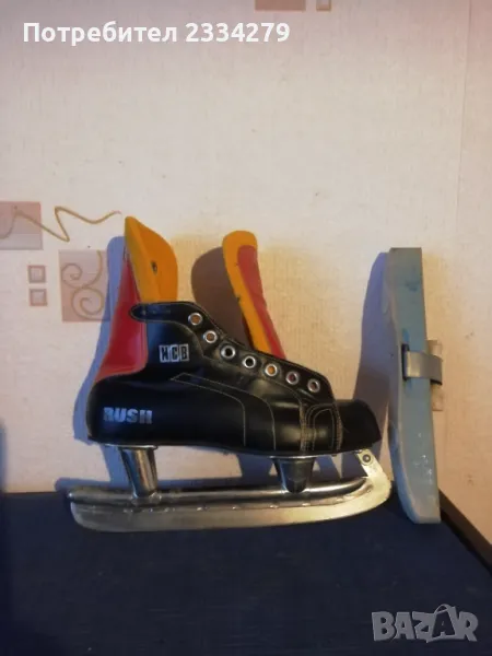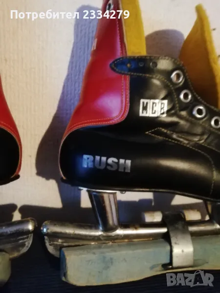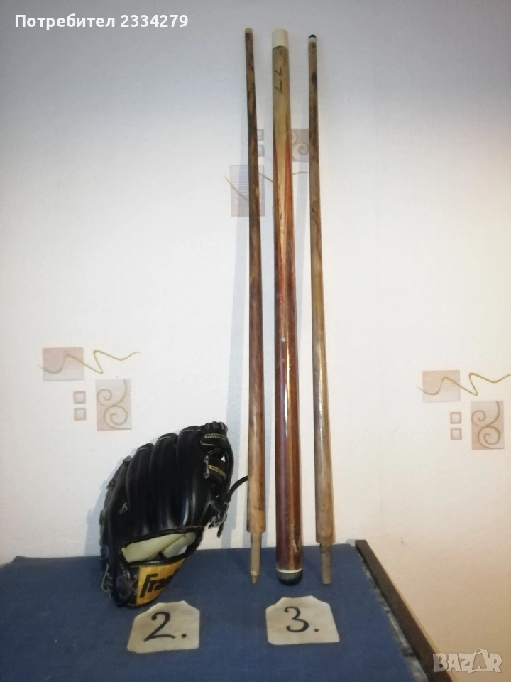 кънки марка ,,RUSH-MCB 40028" метални ШИНИ с надписи: ,, tornado- COVOPOL" перфектно състояние, комплект с предпазители от дърво, размер N:38-39 изработени от естествена кожа ръчно през 60-70години в Чехословакия. Може да се ползват или за декорация колекция, цена 25€.; N:2 беизболна ръкавица от серията ,,Diamond Master" марка ,,Franklin" предназначена за младежи и начинаещи, серия (4690), цена 8€.; N:3 щека за билярд марка ,,Longoni", професионални аксесоари с подпис на играч, модел ,,Bruxelles E Professional" състои се от две части, дървен винтчасти и с две горни пръчки, общ размер 1м.40см., цена 25€.