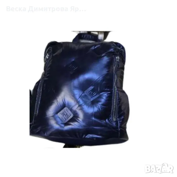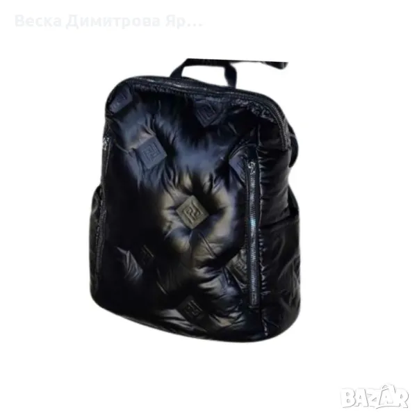 Изключително актуален дизайн! Раницата е изработена от висококачествен промазан текстил, като на яке, тип “пъфър”. Модерна, стилна и лека, раницата е с едно основно отделение, затварящо се с цип и два странични джоба, . Къса дръжка за ръка и регулируеми текстилни презрамки.