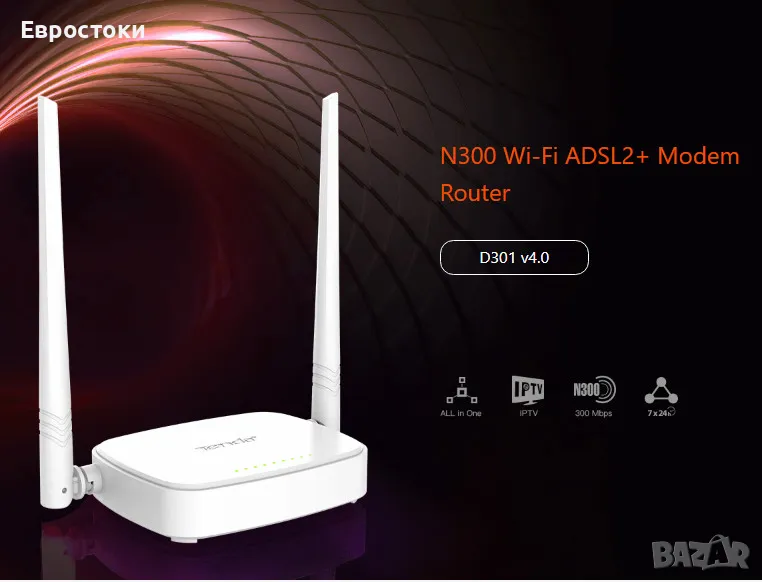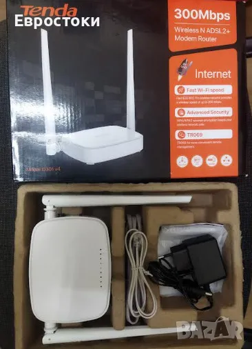 Модемен рутер Tenda D301v4 е истинско решение на едно място, служещо като кабелен и безжичен модем и рутер. Той съчетава цялата функционалност на ADSL 2/2+ модема, Wi-Fi рутера и 4-портовия превключвател и добавя към него набор от функции, включително IPTV, Ethernet WAN, 4K видео стрийминг и TR069.