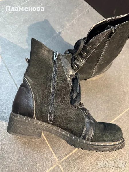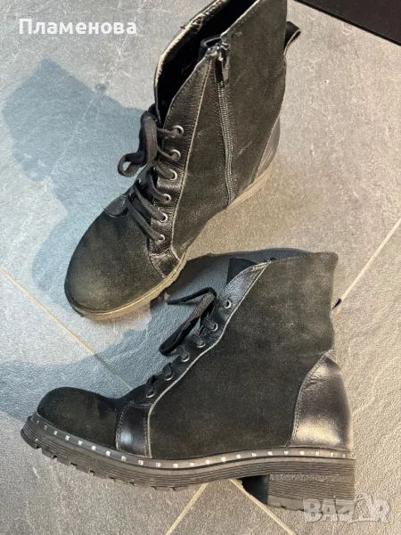 2. Дамски боти от естествена кожа и набук с връзки и цип за по-лесно обуване. Използвани са, но са в добро състояния, много са здрави и удобни. Цена - 15 лв.