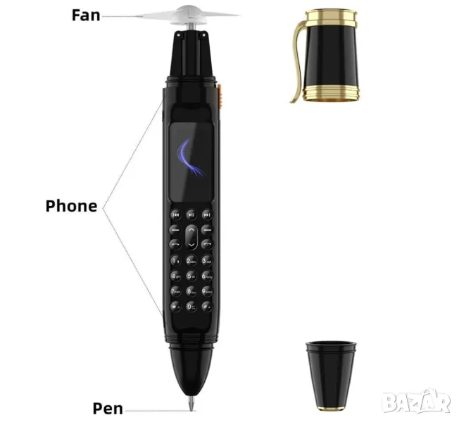 Уникален висококачествен телефон с вентилатор, химикал, радио, 2 сим карти, функция за промяна на гласа и камера.