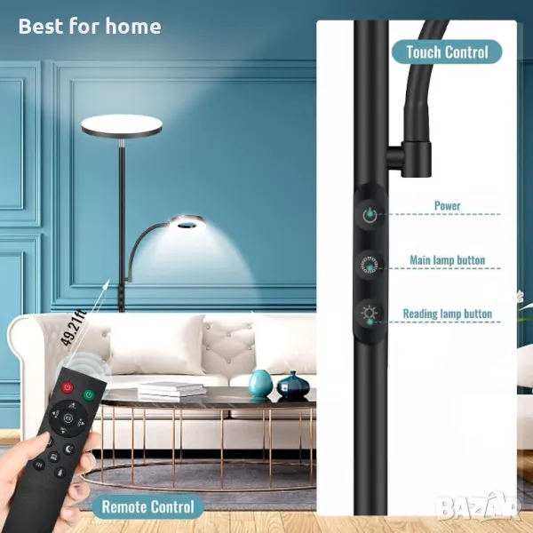 ПОДОБРЕНА СУПЕР ЯРКА ПОДОВА ЛАМПА TORCHIERE: Нашият силен екип за научноизследователска и развойна дейност подобри яркостта и производителността въз основа на същия продукт на пазара. В сравнение с други стоящи лампи с основна лампа 27W/2350lm и лампа за четене 5W/400lm, 126+22 LED перли, нашата е 36W/3200lm и 7W/500lm, 132+28 LED перли. Той е достатъчно по-ярък, за да освети хола ви.