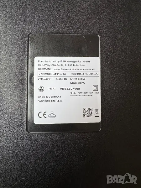 Прахосмукачка с Торба Siemens VBBS607V00, 700W, 4L!