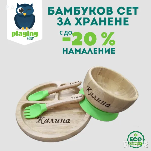 Бамбукова чиния с вилица /кола, слонче, зайче, рак/ - 35,90лв