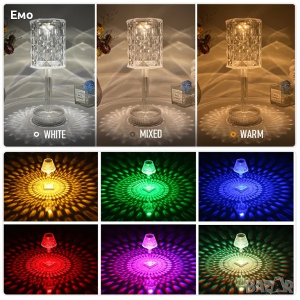 Представяме ви нашата изключителна настолна лампа с USB кабел и дистанционно управление, вдъхновена от изящната красота на кристалните чаши.