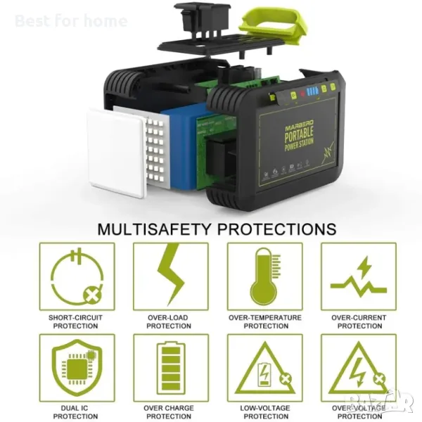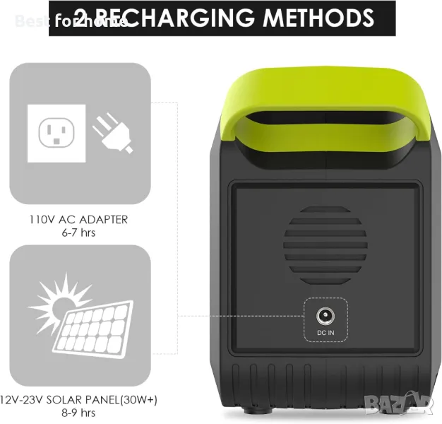 ДВА РЕЖИМА НА ЗАРЕДЯВАНЕ: 88Wh преносима акумулаторна електростанция с два метода за зареждане на преносимата електростанция. На стената можете да заредите напълно захранването чрез AC контакт (включен адаптер) за 5 часа. Или може да се зарежда под слънцето със слънчев панел MARBERO (15V-24V, 1.2A) (не е включен).