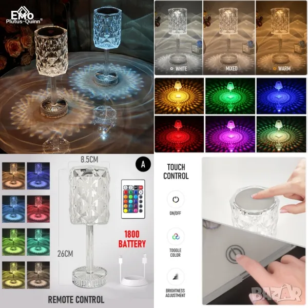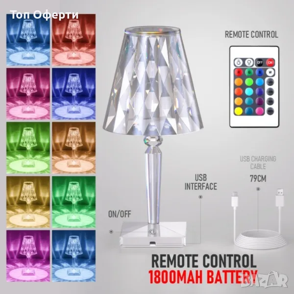 Представете си вашия дом озарен от бляскава и модерна декоративна кристална настолна лампа с USB кабел и дистанционно управление.