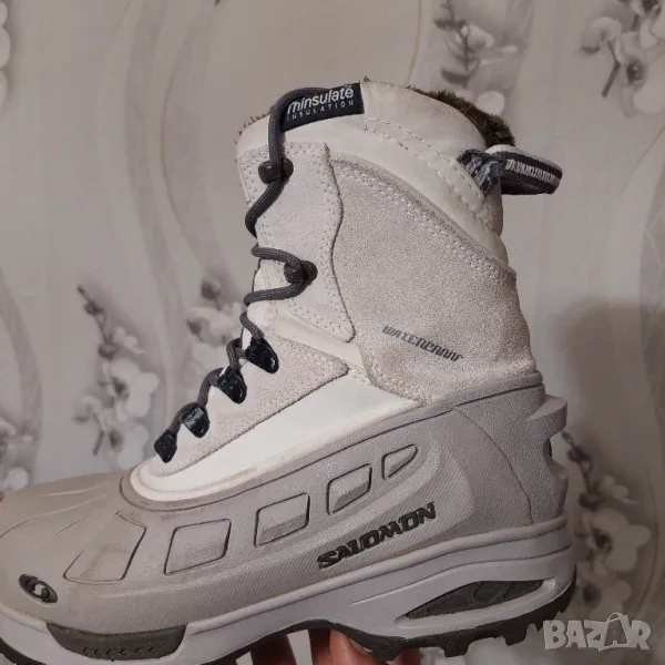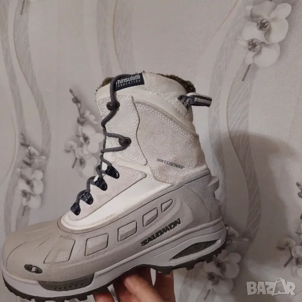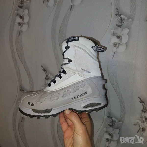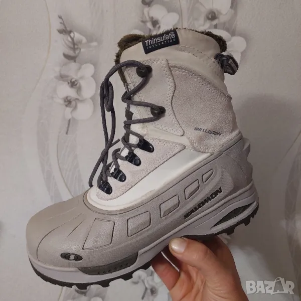 Двуцветни бели и сиви туристически/зимни/сняг обувки Salomon за лед и сняг с изолация Thinsulate плюс специална зимна стелка.