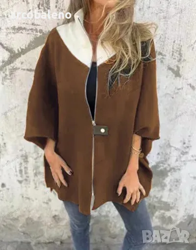 Есенно-зимно дамско свободно яке с яка и цип, 9цвята