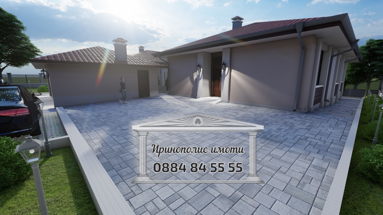 - двор - озеленен и с поставени плочки съгласно проект;