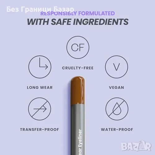 Високоефективен кафяв молив за очи – водоустойчив, неразмазващ се и дълготраен.