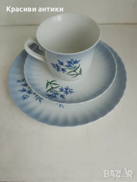 Колекционерски чаши от порцелан на известна марка svaneholm 1530 с височина на чаша, диаметър, млн, с диаметър на подкожна чинийка 13 см и десертна чиния 17 см. Налични 4 чаши