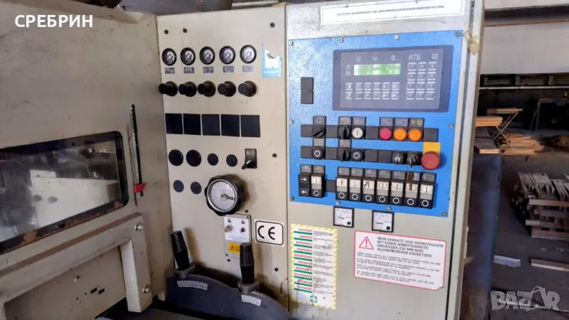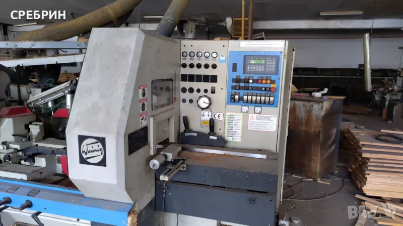 В наличност в топ състояние като нова немска четиристранка марка WEINIG PROFIMAT 23 със седем глави, с широчина 260мм., височина 160мм. и последна глава седма многолистов циркуляр с мотор 30 кв. и макс дискове 300мм., с височина на ряз 100мм. + 8 глава с инверторен мотор играеща роля на обер фреза, която се вижда на СНИМКИТЕ.2000 ГОД Машината е специализиран модел с автоматично настройване на широчина + автоматични програми за работа. Машината е от първи собственик. Не е работила последните 8 години. Почти нова. За повече информация по телефона.