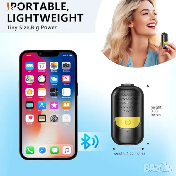 Преносим високоговорител с щипка】Този преносим високоговорител с щипка може да бъде прикрепен към вашата риза, раница или яке чрез издръжливата му пружинна скоба. Дизайнът с щипка осигурява максимална стабилност, високоговорителят ще остане стабилно на място дори при интензивно или екстремно натоварване колоездене. Подобрена 4 пъти по-здрава скоба за изключителна издръжливост: Лесно отварящата се скоба за работа с една ръка ви позволява да закрепите преносим Bluetooth високоговорител навсякъде. Просто слушайте мелодиите си, където и да сте се запътили.