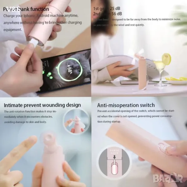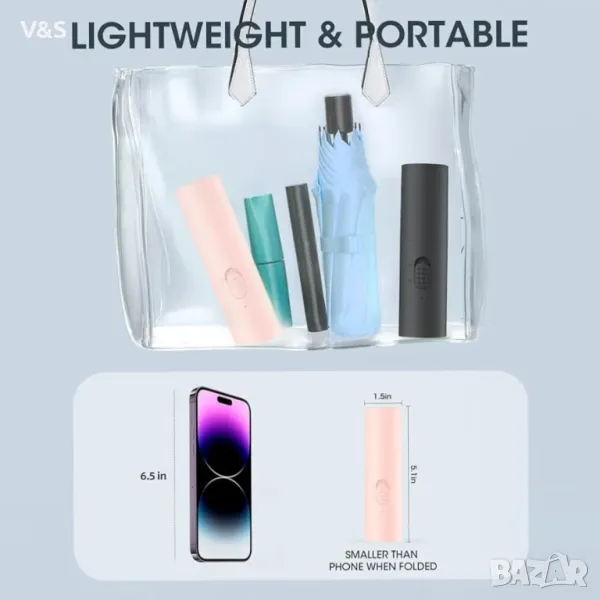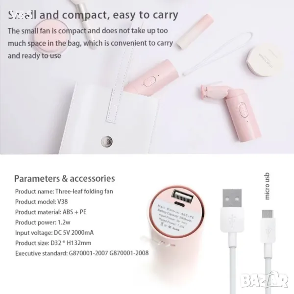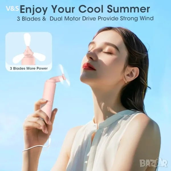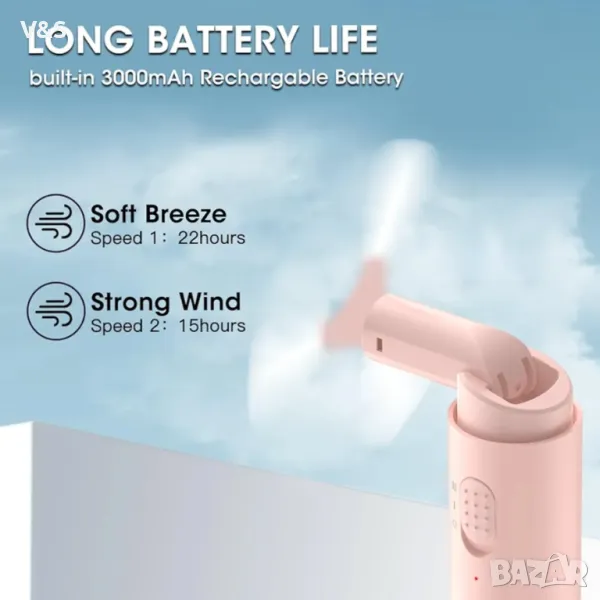 Преносим USB акумулаторен ръчен вентилатор с акумулаторна батерия,розов и черен