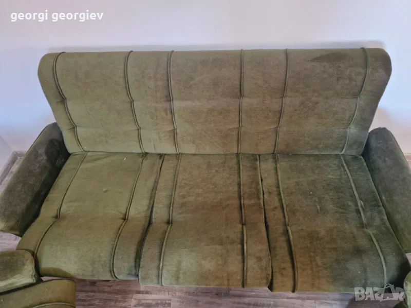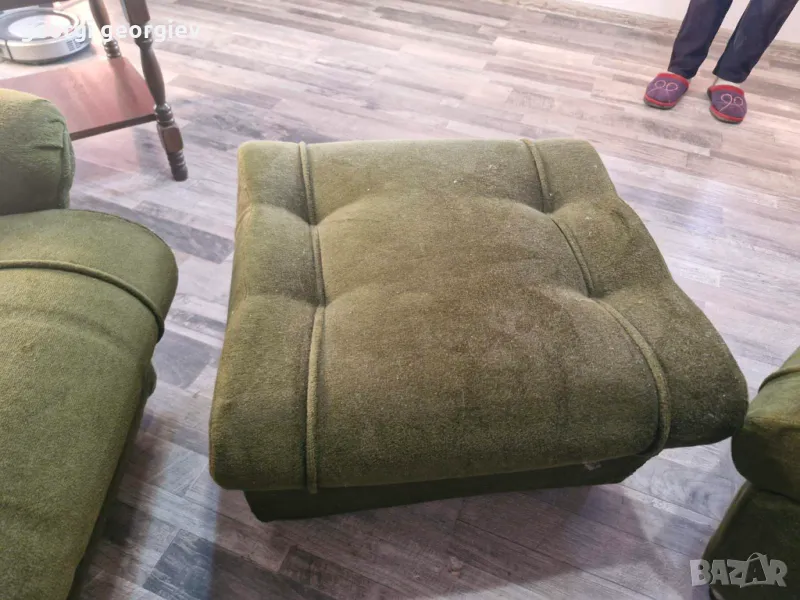 Разтегателен диван тройка плюс 2 футьойла 2 таборетки става и на спалня