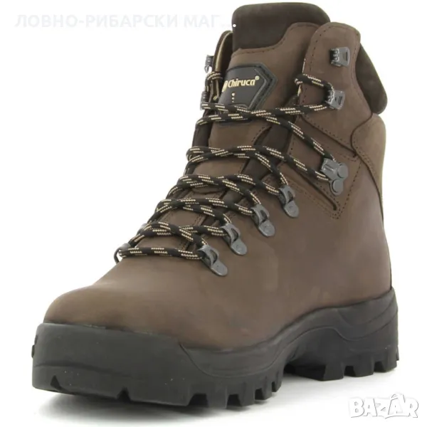 Боти на испанската фирма Chiruca, модел Calibre. Подходящи както за лов, така и за дълги разходки сред природата. Изработени от набук и снабдени с водоустойчива, ветроустойчива и дишаща мембрана Gore-Tex, която не пропуска вода, не изпотява краката и е дишаща. Мембраната е с воден стълб 28 000 мм за 24 часа и дишаемост 25 000 г/м2 за 24 часа.