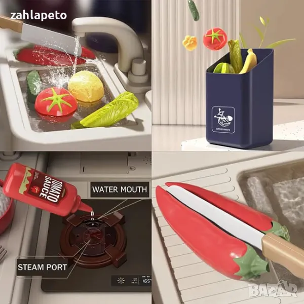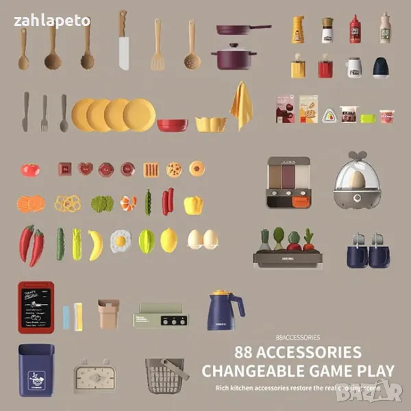 * Общо 88 аксесоара - множество съдове, плодове и зеленчуци.