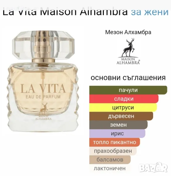 4️⃣. Maison Alhambra "La vita" / 100ml EDP, вдъхновен от "Donna" by Valentino, Дамски парфюм, труднооткриваем, ужасно траен. Цената е крайна 59,99лв / 30 евро.