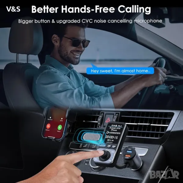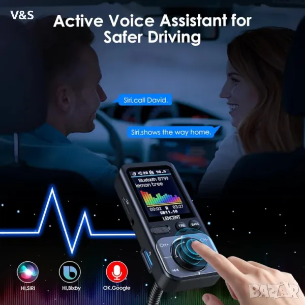 【Активирайте Siri&Google за разговори със свободни ръце】 Предавателят LENCENT Bluetooth FM V5.0 може да получава ясни гласови команди, за да гарантира безопасно шофиране. Можете да останете напълно фокусирани върху пътя, като включите Siri или Google Assistant, за да извършвате телефонни обаждания, да изпращате съобщения или да получавате упътвания. Използване на големия MFB бутон за приемане/повторно набиране/затваряне/отхвърляне на повиквания, за да освободите ръцете си. Той също така поддържа излъчване на гласови известия от съществуващи приложения за навигация, вършете нещата по-удобно и се наслаждавайте на безопасно шофиране.