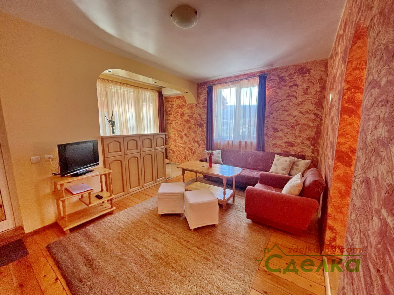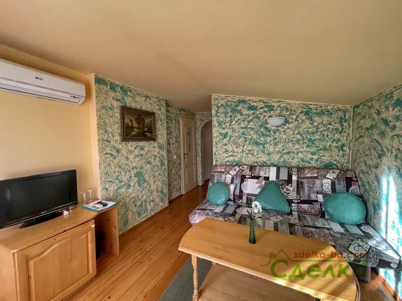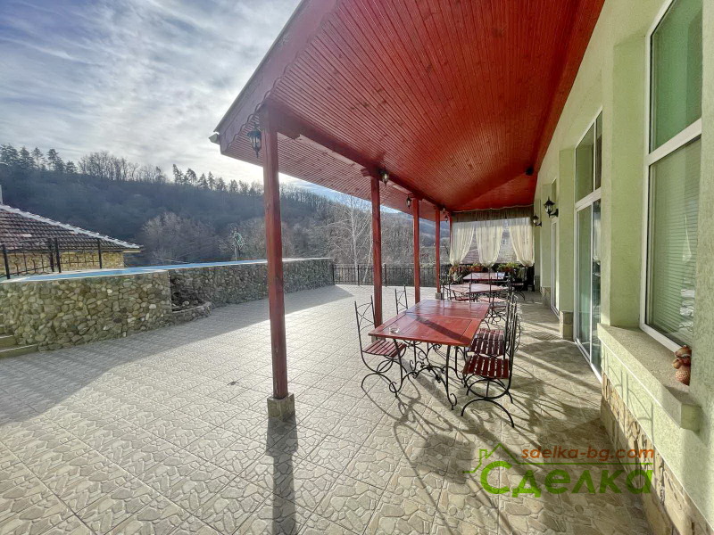 2.Ресторанта с площ от 130 кв.м е изцяло обзаведен и оборудван, разполага с кухня, санитарни помещения и камина. Разполага и с лятна градина с капацитет 36 места. Над ресторанта има апартамент, който също е обзаведен и оборудван.