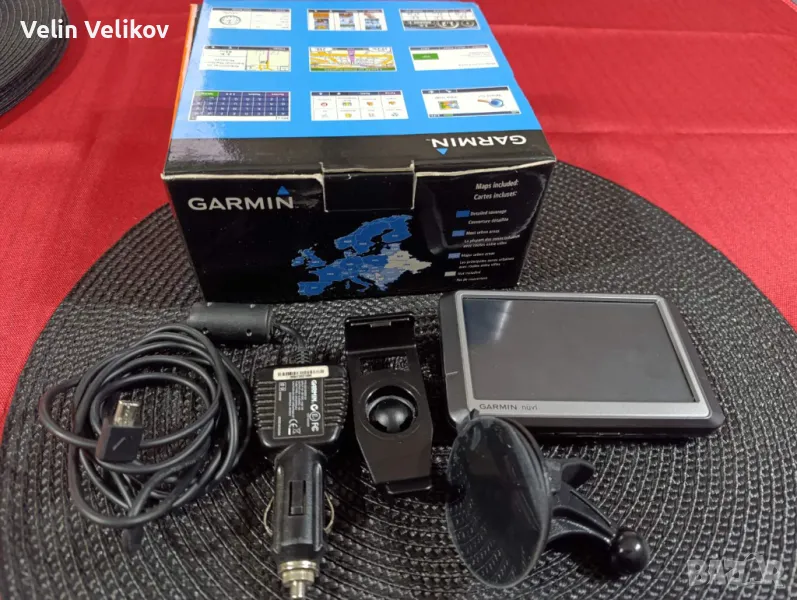 В комплекта има оригинално зарядно 12-24v и чисто нова стойка за закрепване на стъклото