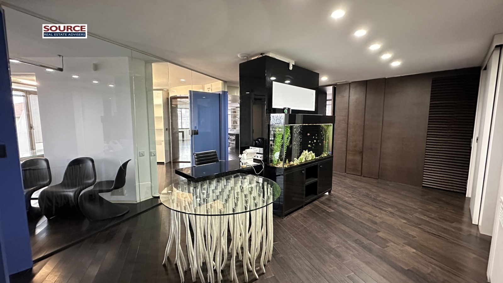 4. Офис обзавеждане: Офисът е с модернистичен дизайн и е обзаведен с дизайнерски мебели /на снимките/.