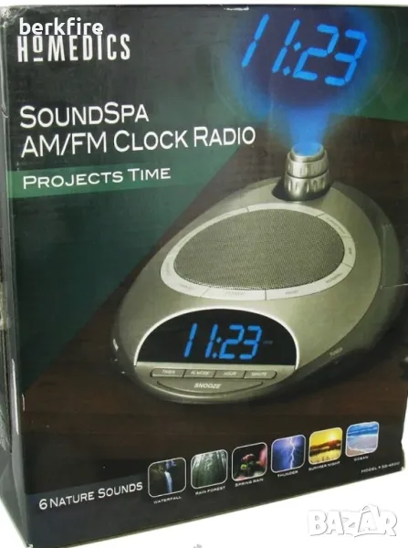 Homedics SS-4500 е многофункционален уред приличащ на костенурка. Има аларма, радио и часовник, който проектира часа на стената, на тавана, насочва се по ваше желание, така че да не се налага да вдигате глава при събуждане. Също различни видове полезни шумове за спалня Nature Sounds. Homedics устройство за звукова терапия и машина за сън за вашите индивидуални нужди.