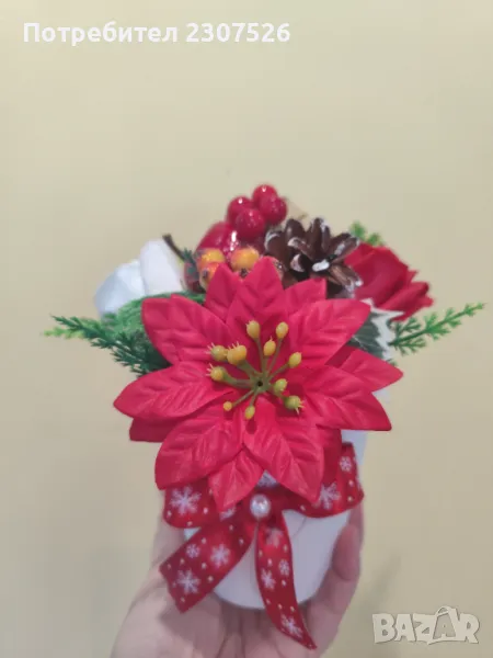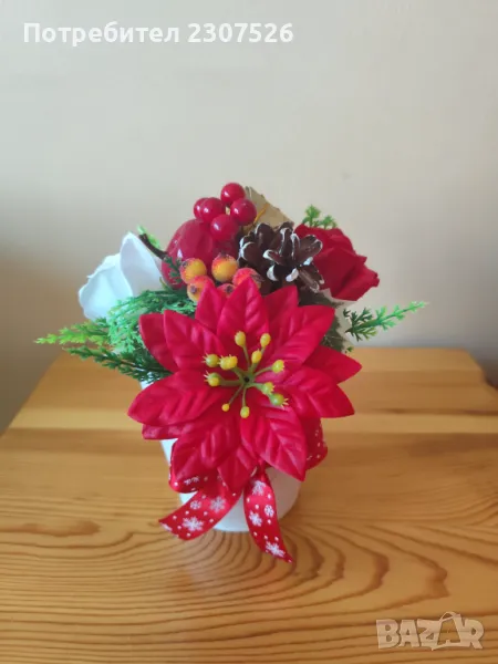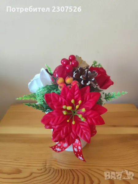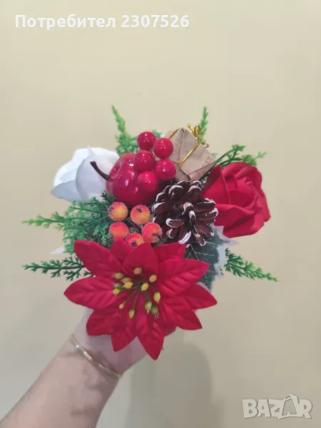 Прекрасен коледен букет от пластични сапунени цветя и декорация!