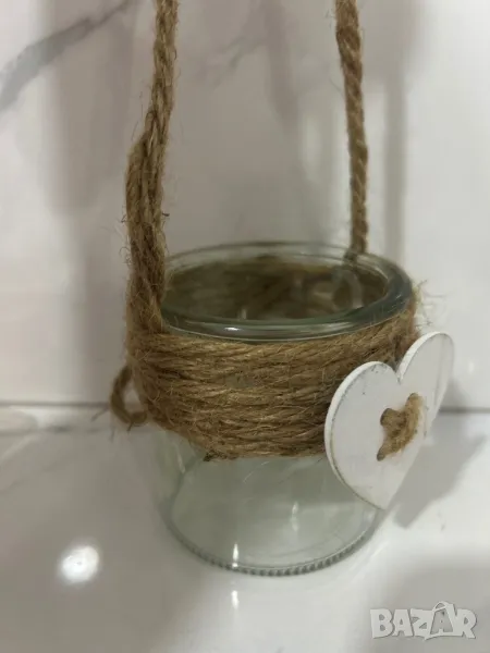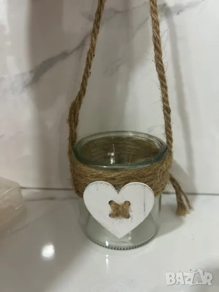 Свещник с връв и бяло сърце DecorCasa → Обява 48249243
