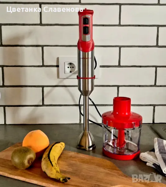 Сила и мощност за нарязване, емулгиране и смесване за най-кратко време. Въведете храната, активирайте ръчния миксер и незабавно вашата рецепта е готова.