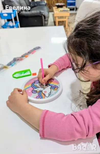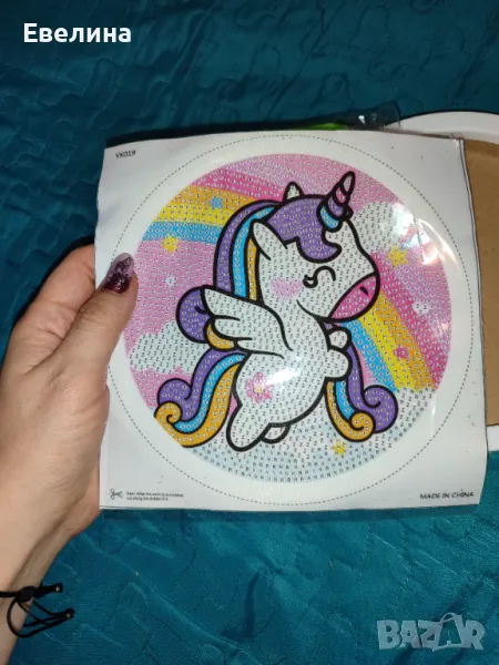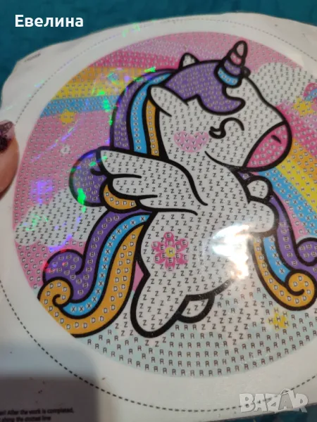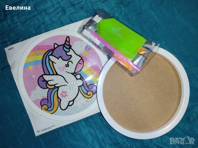 Детски диамантен гоблен Еднорог с пластмасова рамка, нов → Обява 48249821