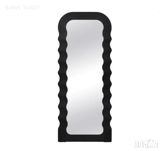 Стенно огледало в цяла дължина с вълнообразна черна рамка 46x110 см