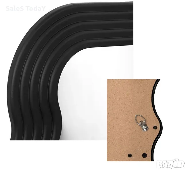 Стенно огледало, с пластмасова рамка с вълнообразен дизайн и 2 опори на гърба.