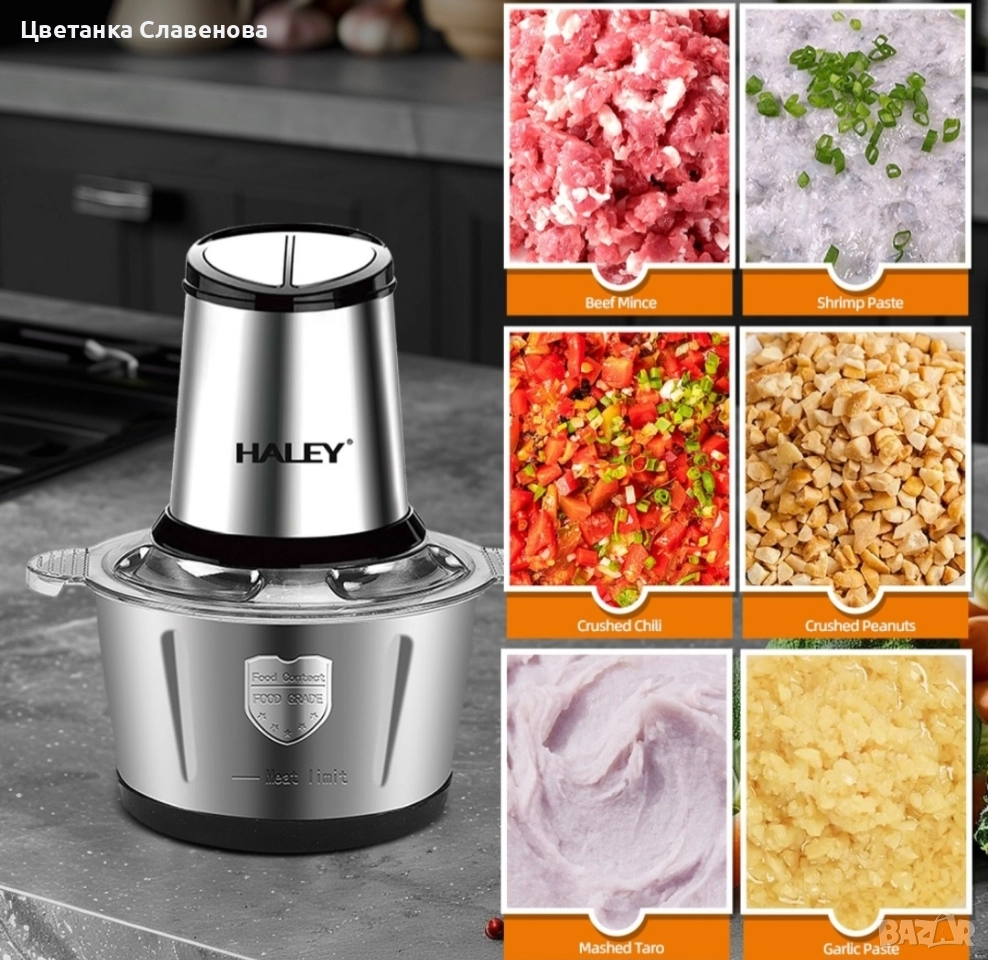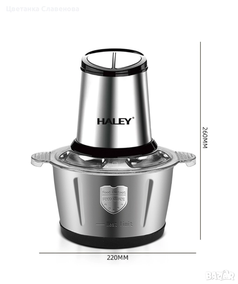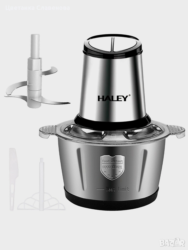 Чопър за месо и зеленчуци, 2 л купа от неръждаема стомана, 4 остриета от неръждаема стомана, 500 W