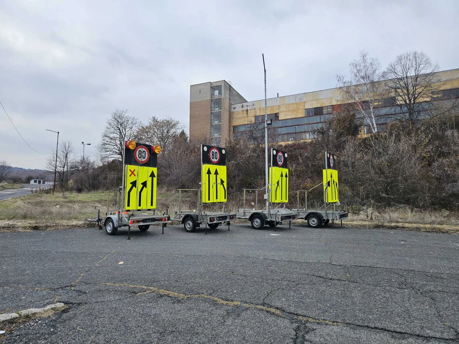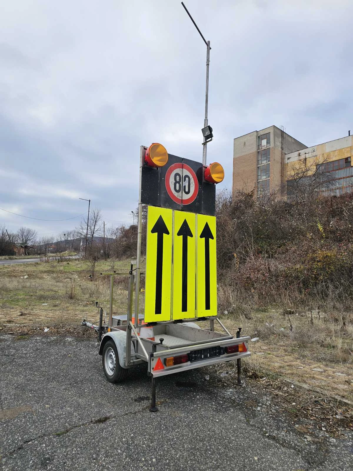 РЕМАРКЕ ЗА ВРЕМЕННА ОРГАНИЗАЦИЯ НА ДВИЖЕНИЕТО Нов внос . Отлична състояние. Ремаркето е поцинковано. Всичко работи перфектно. 430 кг- собствено тегло 750 кг- общо тегло 320 кг- тегло на товар 1050 кг- натоварване на оста Тегличът се наглася от 2 места. Може да се дърпа с В /Б категория. 185/65 R14C- размер на гумите Гумите са на 90%. Батерия+зарядно за 220V за мрежата.