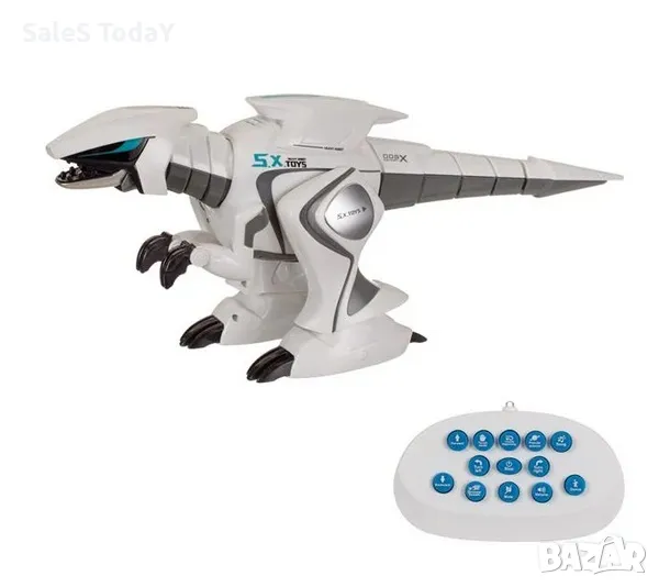 Динозавър играчка робот с инфрачервено дистанционно управление и сензор за докосване. С бионично ходене може да клати глава и опашка, има интелигентна и забавна интерактивност и аудио предварително известяване, вграден чип и система за осветление.Захранва се от 1 литиева батерия 3,7 V (и USB зарядно устройство) (включена) за робота и 2 AAA батерии (не са включени) за дистанционното управление. Размери на опаковката
