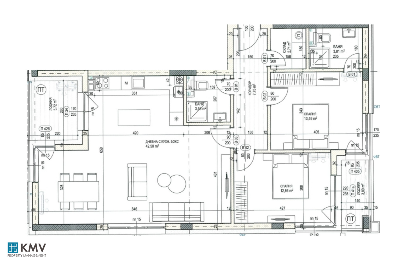 KMV Property Management ви представя тристаен апартамент в новострояща се сграда в кв. Витоша, пред етап АКТ 15.