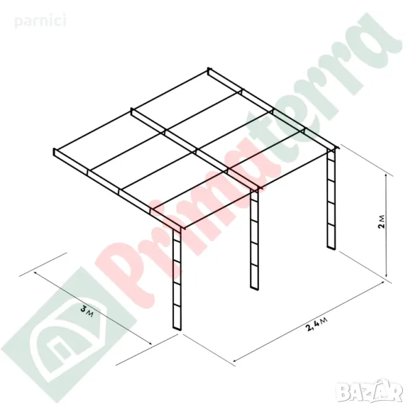 3 x 4 x 2,3 м – Промо цена: 531,74 € / (1 040,00 лв)