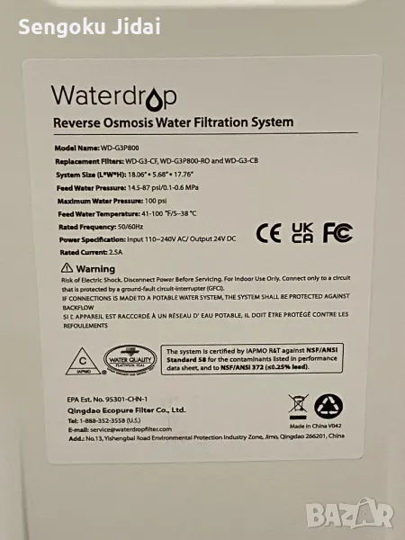 Чисто нова система за филтриране на вода Waterdrop Osmosis → Обява 48251477