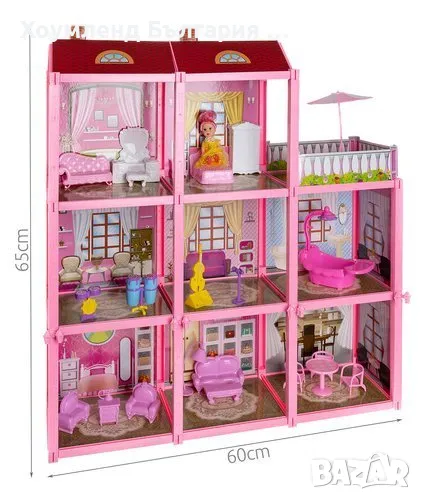 Къщата за кукли е мечтаната играчка на всяко момиче. Тя осигурява страхотна, креативна и ангажираща игра самостоятелно или в по -голяма група. Представеният модел има много декоративни елементи, отличава се с функционални решения и е оборудван с аксесоари, необходими за забавление. Собственикът със сигурност ще го хареса!
