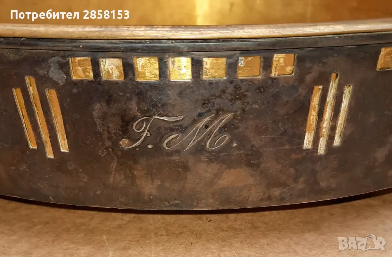 Старинна фруктиера Австро- Унгария,посребрен и позлатен месинг Ар Нуво → Обява 48253207