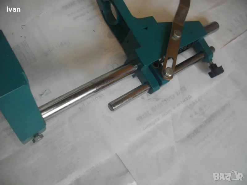 Алуминиева основа с размери 210х170 мм, с възможност за поставяне на машинно менгеме и с възможност за закрепване към работен плот/маса/тезгях посредством две оригинални дупки на основана за захват. Височина на стойката - 435 мм, височина с лостовата дръжка - 505мм.