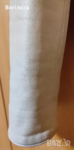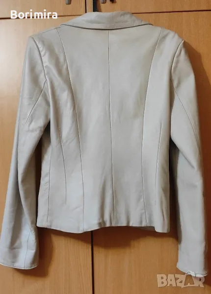 Дамско кожено сако, естествена кожа, цвят бяло към екрю, по етикет размер S, но според мен отговаря на М, с точни размери: